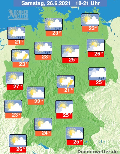 Heute Abend ist es teils heiter, gebietsweise ziehen aber auch einige und teils dichte Wolken durch. Es sind zunächst noch einzelne Schauer und selten auch Gewitter möglich, die jedoch im Laufe des Abends immer weiter abklingen. Die Temperatur liegt bei 21 Grad in Wilhelmshaven und bis 27 Grad in der Kölner Bucht.