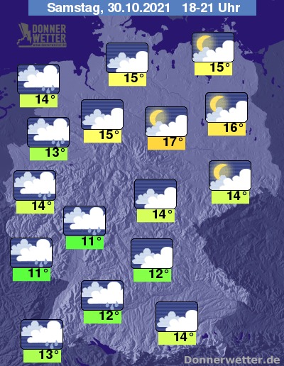 Heute Abend fällt vom Südwesten, über den Westen bis zur Nordsee gebietsweise Regen, weiter östlich ist es ebenfalls meist dicht bewölkt, jedoch trocken. Oft Auflockerungen zeigen sich noch im Osten und Nordosten des Landes. Die Temperatur liegt bei 11 Grad in Saarbrücken und bis 17 Grad in Magdeburg.