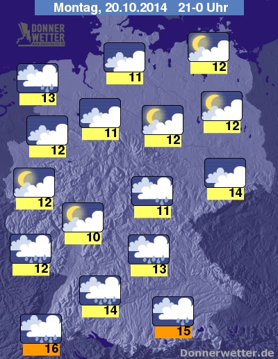 Am Abend fällt vor allem in der Südosthälfte und im Nordwesten des Landes zeitweise Regen, dazwischen liegt ein breiter Streifen mit weitgehend trockenem, aber dennoch häufig wolkigem Wetter. Gebietsweise ist es aber auch nur gering bewölkt. Die Abendtemperatur liegt bei 16 Grad in Freiburg und etwa 10 Grad am Odenwald.
