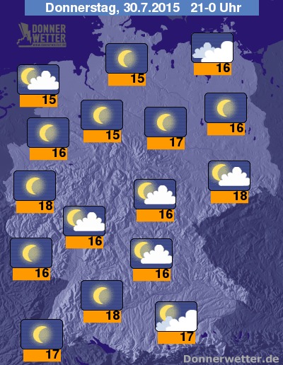 Heute Abend zeigt sich Himmel über Deutschland vielerorts wolkenlos, hier und da ziehen jedoch auch lockere Wolkenfelder durch. Dichte Wolken sind zudem im Ostseeküstenumfeld möglich, aber auch hier bleibt es dabei trocken. Die Abendtemperatur liegt bei 18 Grad im Ufgau und etwa 15 Grad in der Lüneburger Heide.