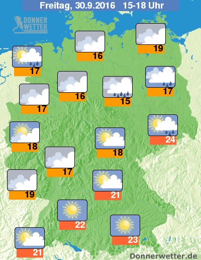 Die Temperaturen liegen bei um die 15 Grad C an der Weser und um die 24 Grad C im Erzgebirge.
