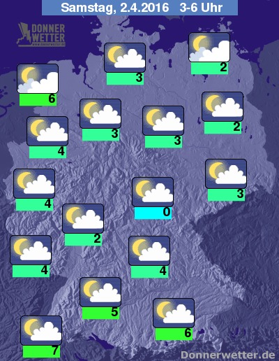 In der Nacht zum Samstag ist es im Küstenumfeld gebietsweise mal stärker bewölkt, sonst bleibt es bei einer meist lockeren und nur zeitweise auch wechselnden Bewölkung. Es bleibt trocken bei Tiefstwerten von 7 Grad in Freiburg und um 0 Grad im Grabfeld.