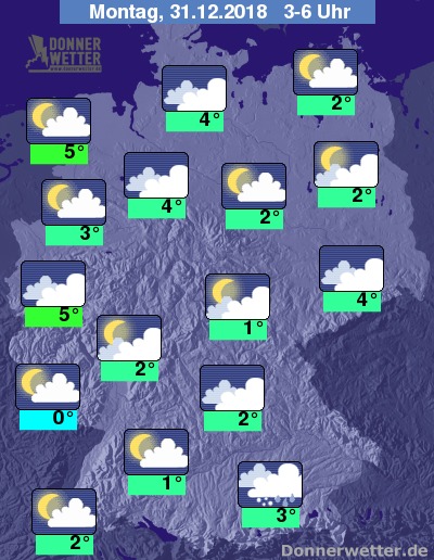 In der Nacht zum Montag ist es oft noch stark, hier und da aber auch aufgelockert bewölkt, im Südosten fällt noch gebietsweise Regen, Schneeregen oder Schnee. In den übrigen Landesteilen bleibt es bei Tiefstwerten von 5 Grad am Niederrhein und bis 0 Grad am Pfälzer Wald trocken.