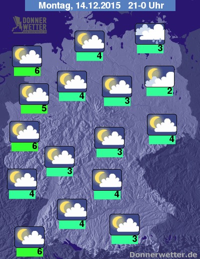 Heute Nachmittag bleiben die Wolken vor allem im Nordosten Deutschlands häufig dicht, sonst gibt es jedoch meist einen Wechsel aus einigen Wolken und zeitweiligem Sonnenschein. Besonders im Süden und Westen kann sich die Sonne auch gut durchsetzen und es wird vielerorts sogar sonnig. Es bleibt landesweit trocken bei Temperaturen von 4 Grad in Vorpommern und bis 10 Grad im Breisgau.