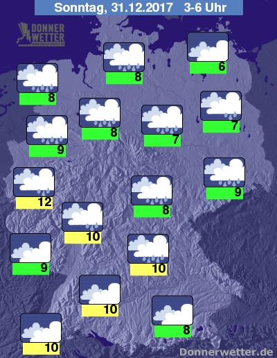 In der kommenden Nacht ziehen dichte Wolken mit zeitweiligem und teils langanhaltendem Regen von Südwest nach Nordost. Gegen Morgen klingen die Niederschläge im Süden und Südwesten nach und nach ab. Die Temperatur sinkt auf milde 12 Grad in Köln und bis 6 Grad in Neubrandenburg.