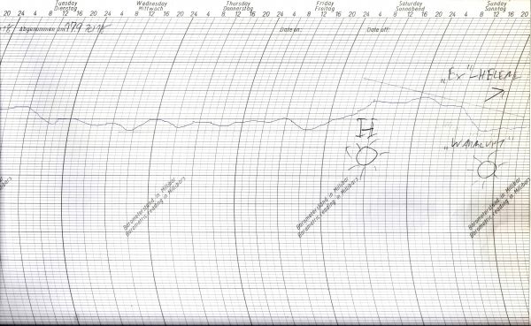 Unser Schrieb zeigt den Luftdruckverlauf an unserer Wetterstation in Bonn zwischen Montag und Sonntag vergangener Woche.