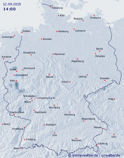 Nachmittags einzelne Schauer im Westen. Aktuell sind auf dem Regenscanner Regenwolken zu sehen.