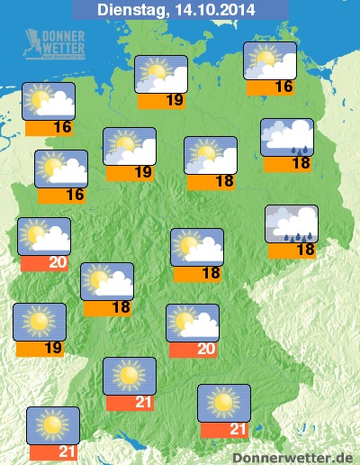 Am Dienstag zieht sich der teils kräftige Regen in den Osten und Nordosten Deutschlands zurück, dahinter lockert es langsam wieder etwas auf. In den übrigen Landesteilen ist es bereits zu Tagesbeginn vielfach heiter oder aufgelockert bewölkt, gebietsweise wird es auch sonnig. Am Alpenrand sind lokale Schauer und Gewitter jedoch nicht auszuschließen, sonst bleibt es aber trocken. Die Temperatur steigt auf 18 Grad an der Nordsee und bis 22 Grad in Schwaben.