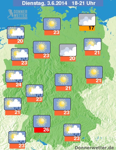 Im Süden und Westen kann es einzelne Schauer und Gewitter geben, sonst ist es ein angenehmer Abend.