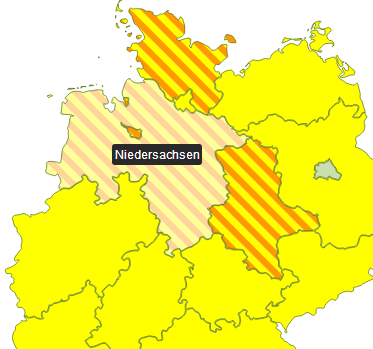 Vorwarnungen für Nordseeküste und hohe Mittelgebirge, Warnung vorerst für Zeitraum Mittwoch (08:00) Uhr bis Donnerstagmorgen.