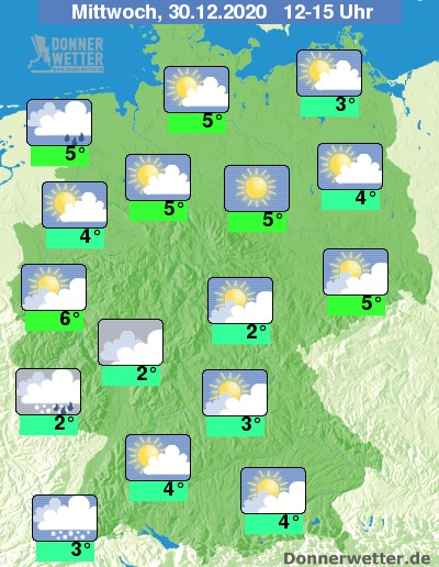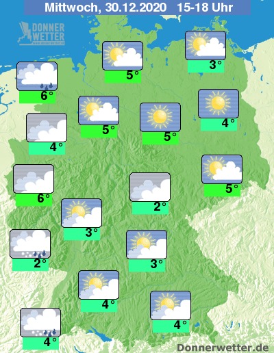 An der Emsmündung, sowie an Oberrhein, Saar und Mosel bringen kompaktere Wolken gelegentlich Regen oder Schneeregen, in höheren Lagen Schnee.