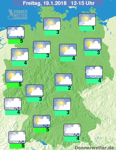 Zudem zeigt sich jetzt auch häufiger wieder die Sonne, vor allem in der Mitte des Landes. Schnee oder Regen fällt nun nur noch in Teilen Süd- und Ostdeutschlands.