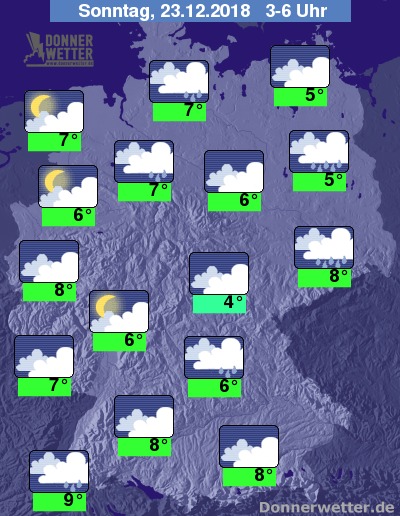Am Sonntag bleibt es landesweit dicht bewölkt, dabei fällt über der Südhälfte zeitweise Regen, sonst fällt hier und da etwas Regen, oft ist es aber auch trocken. Die Temperatur steigt auf 7 bis 12 Grad.