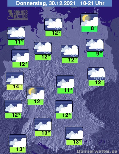 Heute Nachmittag bleibt es größtenteils stark bewölkt oder bedeckt, dabei zieht ein Regenband vom Südwesten nordostwärts, vor und hinter dem breiten Band bleibt es weitgehend trocken. Die Temperatur liegt bei 7 Grad an der Müritz und bis 14 Grad in der Kölner Bucht. Es weht ein oft starker und teils stürmischer Wind.