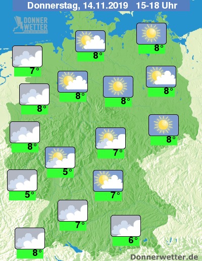 Bis zum Abend ändert sich an der Wetter- und Temperaturverteilung nur wenig.