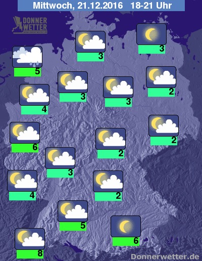 Am Abend bekommen wir einen leicht bewölkter Himmel, bei dem der Blick auf die Sterne nur durch wenige Wolken verdeckt wird. An der Nordsee sind allerdings bei einem bedeckten Himmel Schauer möglich.