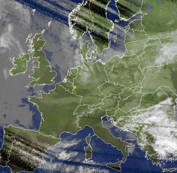 Auf dem Satellitenfoto von heute Morgen erkennen wir eine meist stark bewölkte Osthälfte Europas, hier sorgt Tief "Frauke" über Osteuropa für oft nasskaltes und unbeständiges Wetter. Deutlich freundlicher und trocken ist es dank Hoch "Joachim" mit Kern westlich vor Frankreich über großen Teilen von Westeuropa.