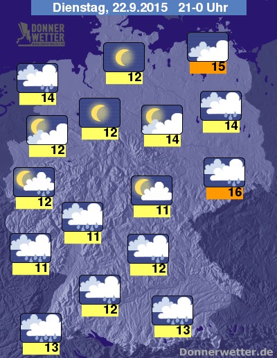 Heute Abend ziehen vor allem über die Südhälfte und den Osten Deutschlands meist dichte Wolken, aus denen immer wieder, teils langanhaltender Regen fällt. Im Norden und Westen ist es häufig auch sternenklar, gebietsweise ziehen hier aber auch dichte Wolken mit einzelnen Schauern durch. Die Abendtemperatur liegt bei 16 Grad in Dresden und 11 Grad am Taunus.