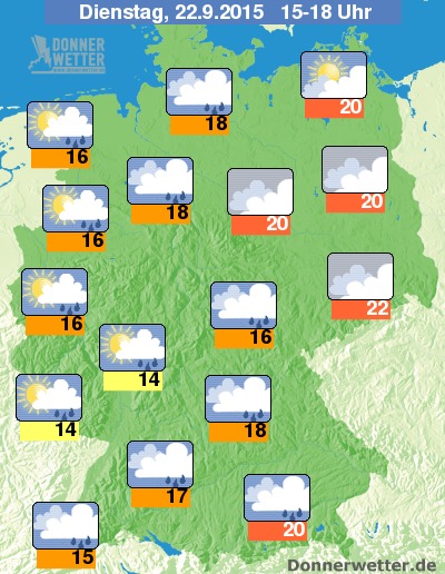 Heute Nachmittag ziehen immer wieder dichte Wolken übers Land und es fällt dabei zeitweise Regen, gebietsweise kann die Bewölkung aber auch mal etwas auflockern und der Sonne Platz machen. Im Norden und Westen Deutschlands können sich zudem einzelne, meist kurze Gewitter entwickeln. Die Temperatur steigt auf 14 Grad im Bliesgau und bis 22 Grad in Dresden.