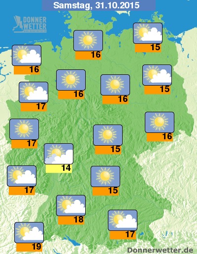 Am Samstag ist es nach Auflösung örtlicher Nebelfelder verbreitet sonnig und nur hier und da ziehen auch mal mehr Wolken durch, dabei bleibt es trocken. Die Temperatur steigt auf milde 14 bis 19 Grad.