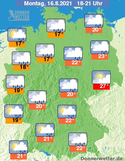 Heute Abend ist es weiterhin oft dicht bewölkt, hier und da zeigen sich Aufheiterungen. Vielerorts bilden sich Schauer oder es fällt zeitweise Regen. Die Temperatur liegt bei 17 Grad im Norddeutschen Tiefland und bis 27 Grad in Dresden. Im Nordwesten weht ein oft starker, an der Nordsee verbreitet stürmischer Wind.