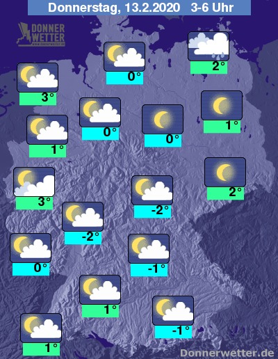 In der Nacht auf Donnerstag ist der Himmel über weiten Landesteilen locker oder aufgelockert bewölkt, in der Mitte und im Osten funkeln die Sterne zeitweise auch mal von einem wolkenlosen Himmel. Dichter sind die Wolken anfangs noch im Süden. An der Ostseeküste verdichten sich die Wolken dagegen im Laufe der zweiten Nachthälfte und es kann etwas Regen, Sprühregen oder Schneeregen fallen. Vorsicht, Glättegefahr!