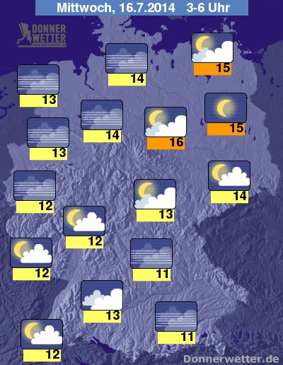 In der Nacht zum Mittwoch bleibt es zumeist aufgelockert bewölkt, vielerorts ist es auch klar und es bleibt trocken. Vor allem im Westen und Norden wird es in der Nacht stellenweise neblig oder neblig-trüb. Die Temperatur sinkt auf 16 Grad in Magdeburg und bis 11 Grad an der Fränkischen Alb.