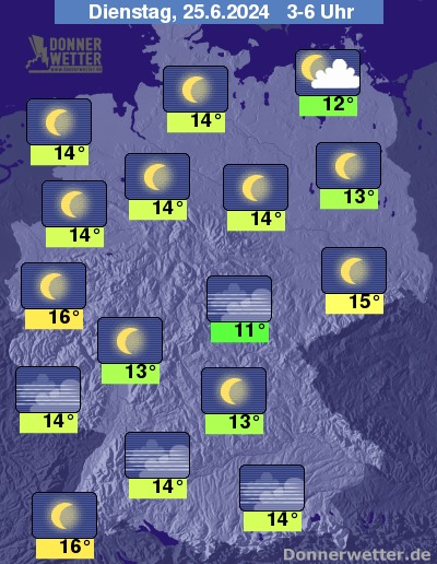 Die Temperaturen gehen in den Frühstunden zurück auf Werte um 16 bis 11 Grad.