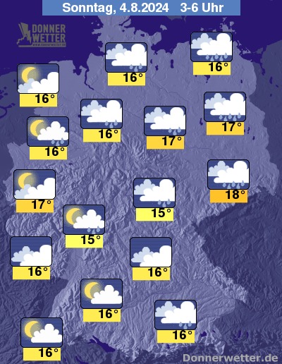 In der Nacht zum Sonntag sind bei überwiegend wechselnder oder starker Bewölkung in der Nord- und Osthälfte weitere Schauer und einzelne Gewitter möglich. Im Süden und Südosten bleibt es bei aufgelockerter Bewölkung weitgehend niederschlagsfrei.