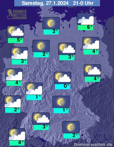 In der Nacht auf Sonntag zeigt sich der Himmel über weiten Landesteilen gering bewölkt oder es ist sternenklar. Es bleibt niederschlagsfrei.