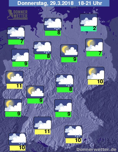 Auch in der Nacht bestimmen dichte Wolken das Bild am Himmel. Vor allem im Nordwesten regnet es dazu am frühen Morgen auch noch verbreitet. Im Nordosten klart es im Lauf der Nacht hingegen mehr und mehr auf und der Himmel ist bis zum Morgen stellenweise sogar wolkenlos, lokal bildet sich jedoch in den frühen Morgenstunden Nebel.
