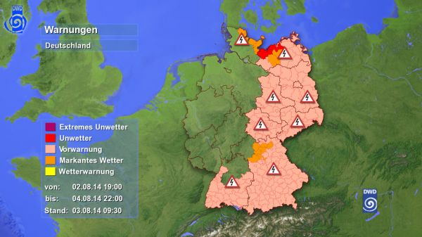 Heute Nachmittag sind unter vielfach dichten Wolken immer wieder, zum Teil kräftige Schauer und Gewitter möglich. Besonders Ost- und Süddeutschland ist heute betroffen. Hier die Vorwarnungskarte für Deutschland.