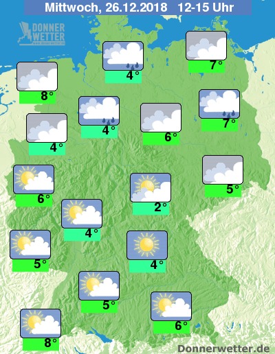 Die Temperaturen liegen zwischen 2 Grad im Thüringer - Becken und 8 Grad im Breisgau, sowie im Emsland.