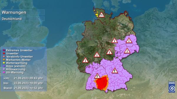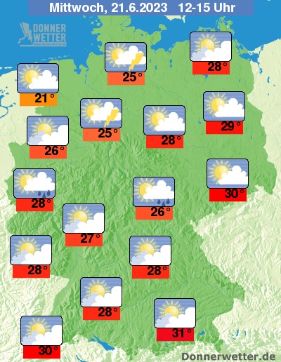 Heute Nachmittag zeigt sich das Wetter zum Großteil heiter oder sonnig. Besonders in den südlichen und westlichen Landesteilen und am Alpenrand bilden sich oft dichte Quellwolken und mögliche Schauer. Vereinzelt sind auch Gewitter möglich. Im übrigen Land bleibt es zum Großteil trocken. Die Temperatur liegt bei 21 Grad an der Nordsee und bis 31 Grad in Oberbayern.