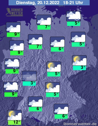 Heute Abend zieht im Westen neuer Regen auf. Über der Südosthälfte kann es hier und da etwas auflockern. Im übrigen Bundesgebiet bleibt es verbreitet bedeckt oder trüb und dazu weitgehend trocken. Die Temperatur liegt bei 3 Grad in der Lausitz und 12 Grad am Oberrhein.