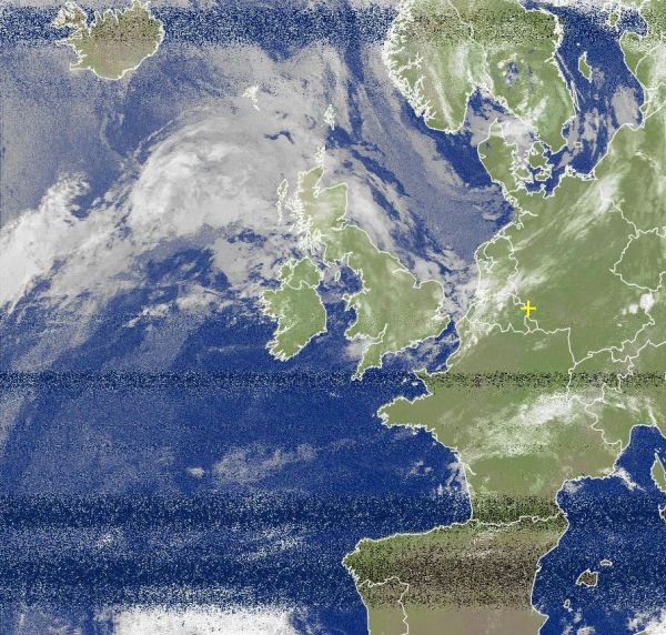 Auf dem heutigen Satellitenbild vom westlichen Europa sind die dichten Wolken eines Tiefdruckgebiets über dem Atlantik zu sehen. Die Ausläufer bringen dabei im Nordwesten von Großbritannien gebietsweise Schauer. Ein kleines Tief liegt auch über der südlichen Ostsee, vor allem in Skandinavien, aber auch in den Bereichen der deutschen Küsten können sich verbreitet Schauer entwickeln. Im übrigen westlichen Europa herrscht aber meist freundliches und trockenes Wetter und die Sonne kommt häufig zum Zuge.