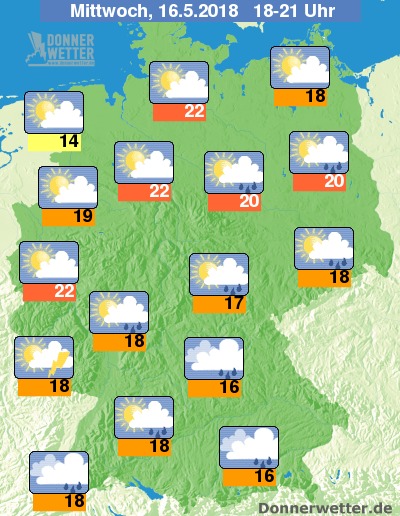 Heute Nachmittag zeigt sich die Sonne vor allem im Norden häufiger, hier sind nur ganz vereinzelt Schauer oder Gewitter möglich, sonst ist es dagegen verbreitet stark bewölkt und es können sich wiederholt Schauer und teils kräftige Gewitter bilden. Die Temperatur liegt bei 14 Grad an der Nordsee und etwa 21 Grad in Hannover.