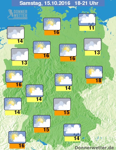 Heute Abend bleibt es über dem Norden verbreitet bedeckt bei jedoch nur selten etwas Regen. m übrigen Land ist es teils stark, teils aufgelockert bewölkt, es zeigen sich jedoch zunehmend Aufheiterungen, zudem bleibt es weitgehend trocken. Die Temperatur liegt bei 11 bis 18 Grad.