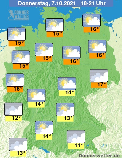 Heute Abend ist es über dem Süden und größtenteils über Sachsen noch meist stark bewölkt, jedoch bleibt es schon weitgehend trocken. Im übrigen Bundesgebiet ist es oft heiter bis sonnig, teils ziehen auch noch einige Wolken durch, dabei bleibt es trocken. Die Temperatur liegt bei 11 Grad in München und bis 17 Grad in Dresden.