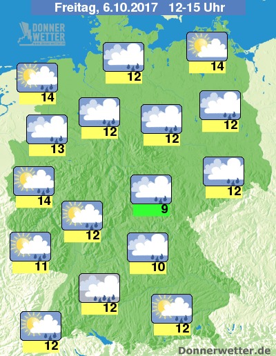 Am Nachmittag ist der Himmel über weiten Landesteilen dicht bewölkt oder bedeckt, längere freundliche Phasen sind vor allem an Nord- und Ostsee sowie in der Südwesthälfte zu erwarten. Mit Schauern muss am Nachmittag verbreitet gerechnet werden.