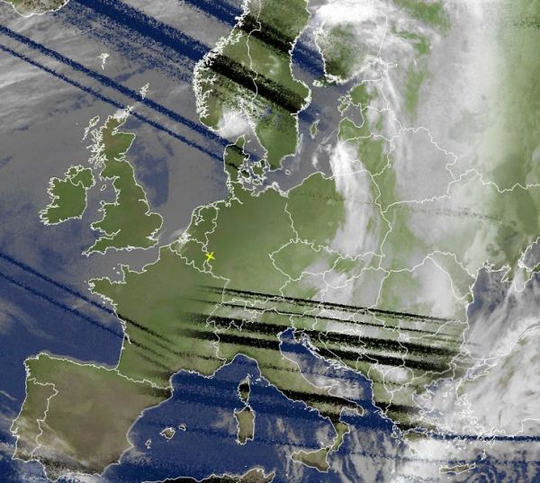 Auf dem heutigen Satellitenbild sind über großen Teilen von Ost- und vor allem von Südosteuropa dichte Regen- oder Schneewolken zu sehen. Ein Hoch über Westeuropa sorgt hingegen fast in der gesamten Westhälfte des Kontinents für trockenes, jedoch nicht selten auch trübes Wetter mit hochnebelartiger Bewölkung. In weiten Teilen von Spanien und Frankreich kann sich aber bspw. auch die Sonne durchsetzen.