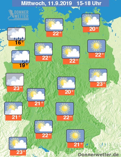 Bis zum Abend breiten sich Wolken mit Regen bis zum Niederrhein und etwas ins Landesinnere von Niedersachsen aus. Auch im Alpenvorland können sich örtliche Schauer und einzelne Gewitter entwickeln. Sonst bleibt es freundlich mit reichlich Sonnenschein.