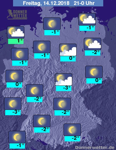 Bis Mitternacht klart es auch über Thüringen teilweise auf und die Temperaturen sinken allgemein in den frostigen Bereich.