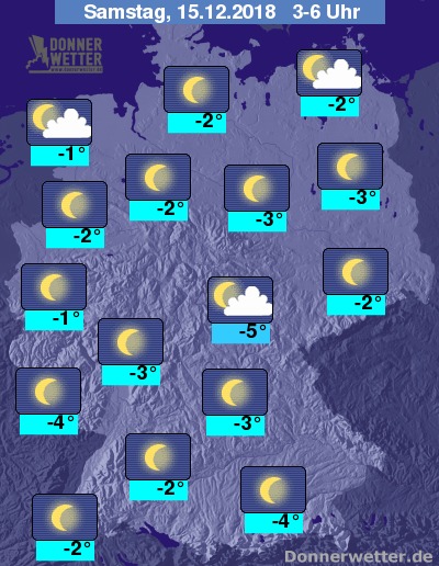 Bis zu den Frühstunden kühlt die Luft auf -5 bis -1 Grad ab, regional wird es noch kälter.