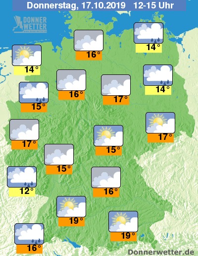 Die Temperaturen liegen zwischen kühlen 12 Grad an der Saar und milden 19 Grad rund um Stuttgart und München.