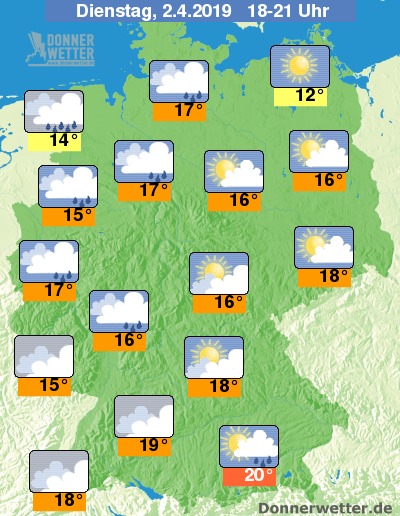 Die Temperaturen liegen vor Dämmerungsbeginn noch zwischen 15 und 20 Grad. Dort wo bereits Schauer aufgetreten sind, sowie an den Küsten bleibt es kühler.