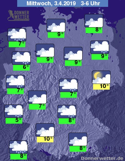 Während der zweiten Nachtälfte dominieren meistens die Wolken und gebietsweise fällt Regen oder kommt zu örtlichen Schauern.