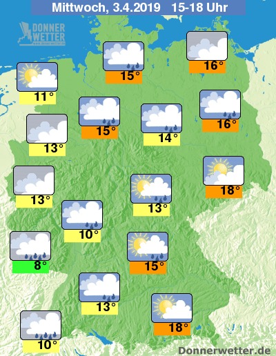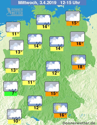 Bis zum Abend ändert sich an der Wetter- und Temperaturverteilung insgesamt nur wenig. Möglicherweise können aber einzelne Schauer bis in den Großraum Berlin vordringen. Im Emsland zeigen sich einige Aufheiterungen.