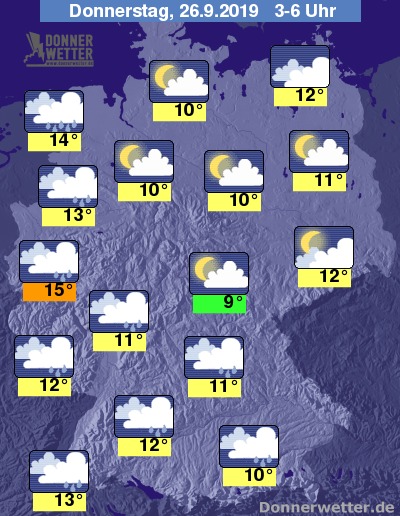Während der zweiten Nachthälfte bekommen die aktiven Regenwolken von Frankreich und Benelux her wieder Verstärkung, auch im Süden tröpfelt es weiterhin. Im Norden und Osten bleibt es überwiegend trocken und die Wolkendecke bekommt größere Lücken, durch welche die Sterne zu beobachten sind.