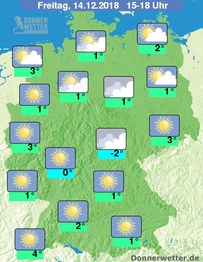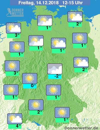 Die Temperaturen liegen zwischen -2 Grad im Thüringer Becken und 4 Grad im Breisgau.